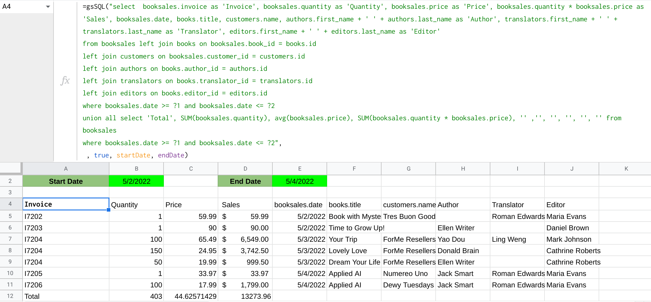 Google Sheets QUERY function replacement using real SQL select syntax.