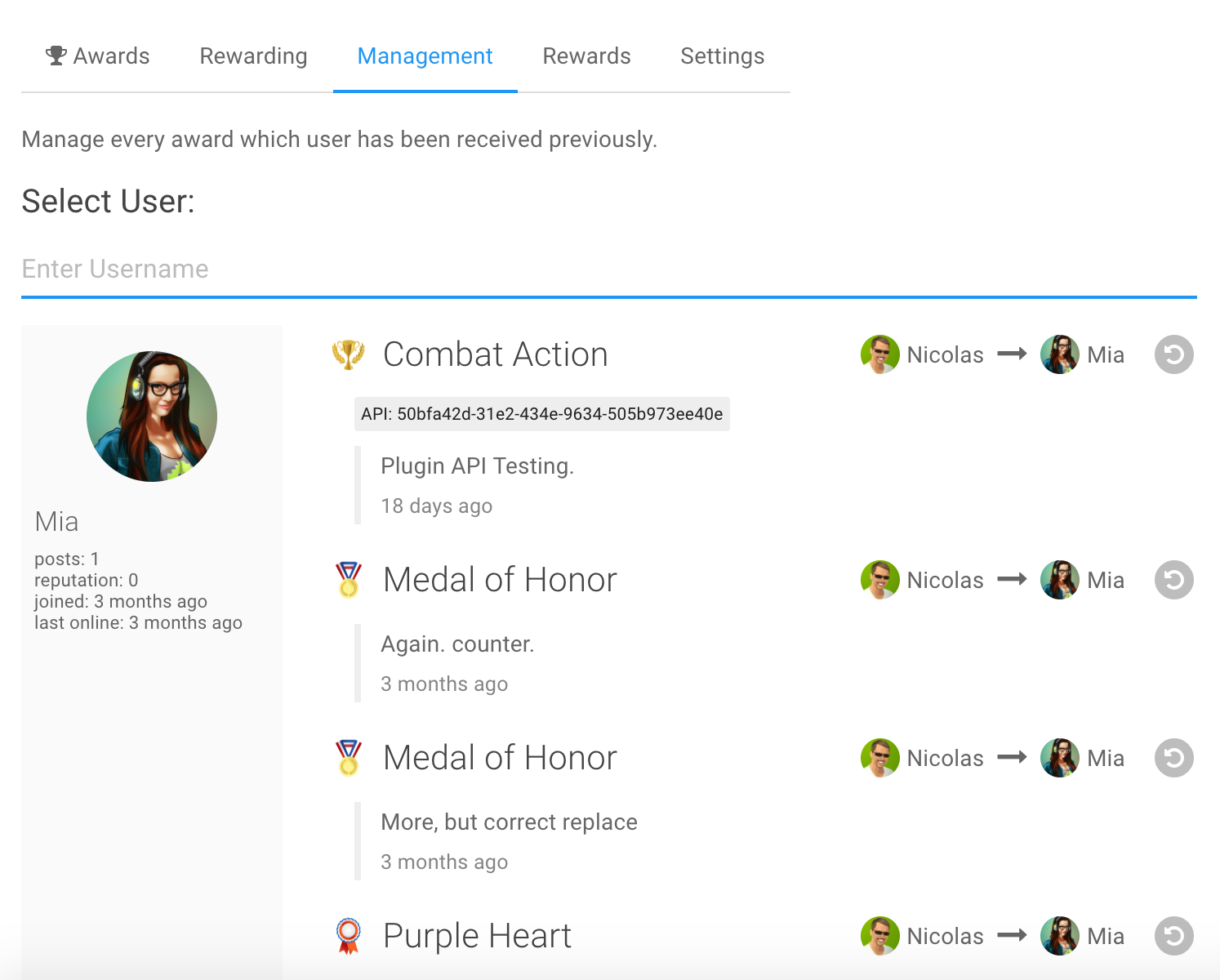 System for rewarding forum users. It allows admin to define set of awards that could be granted to users for special accomplishments.