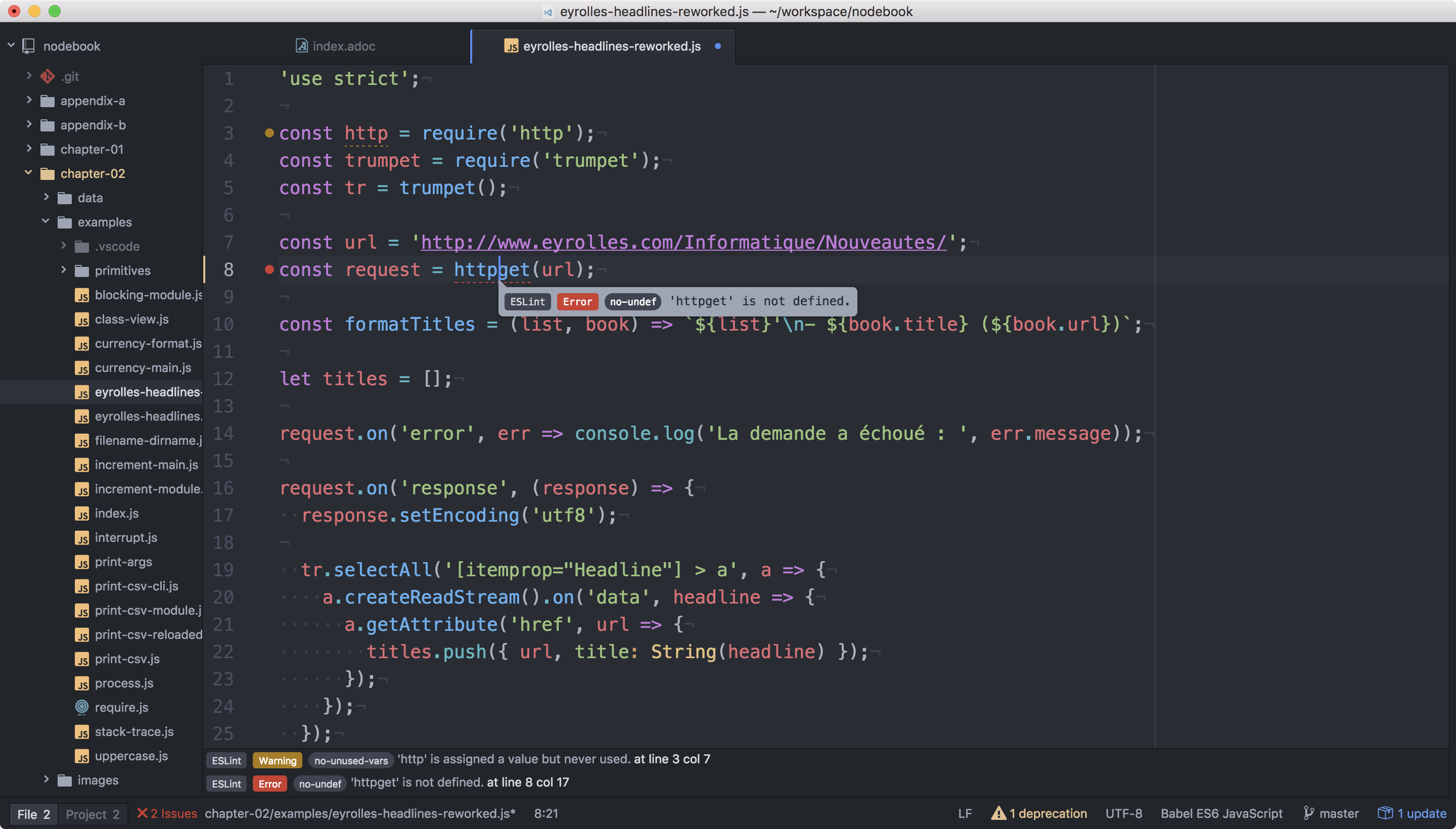 Node.js • Apprendre par la pratique. Familiarisez-vous avec JavaScript, Node.js et l'écosystème de modules npm. Apprenez à concevoir et à déployer des *applications web* et des *outils en ligne de commande*.