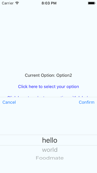 A React Native PickerIOS at the bottom of the page