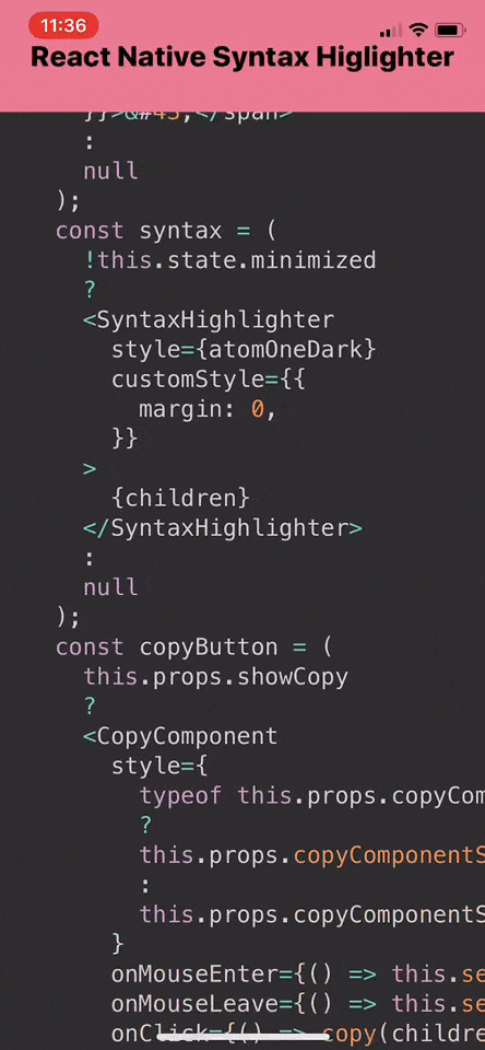 a react native component for syntax highlighting